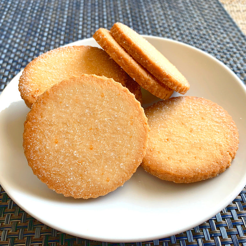 Our lemon shortbread cookies are a rich and buttery shortbread, flavored with fresh lemon zest and sprinkled with monk fruit sweetener. They pair wonderfully with a cup of tea.