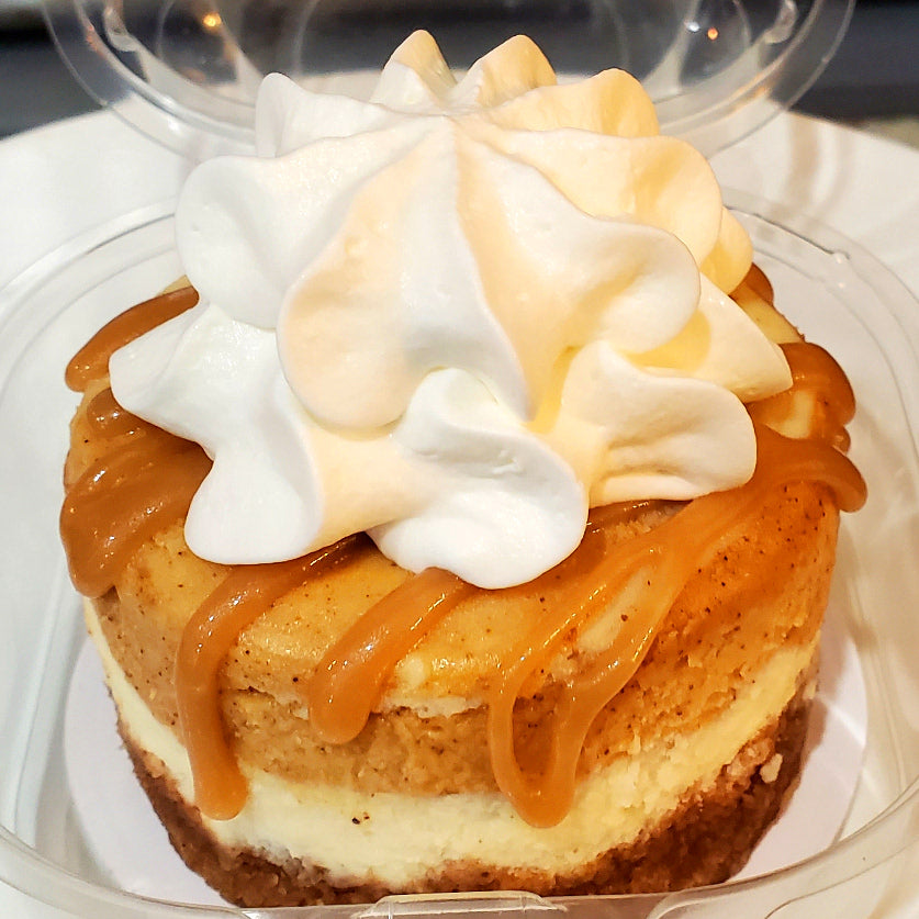 Introducing our Sweet Potato Mini Cheesecake – a perfectly sized dessert for one, blending the rich, creamy texture of cheesecake with the warm, comforting spices of fall. Topped with homemade caramel and freshly made whipped cream, each bite offers a perfect balance of sweetness and spice. This indulgent treat is great for any season, bringing a little bit of autumn in every bite.