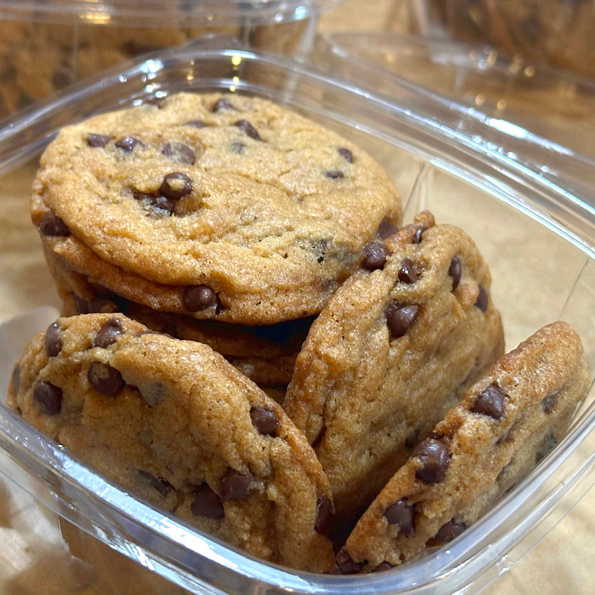 A pack of our delicious Vegan Chocolate Chip cookies. Made with vegan chocolate chips and free of any dairy products, you won't believe these are vegan! This pack is perfect for sharing!
